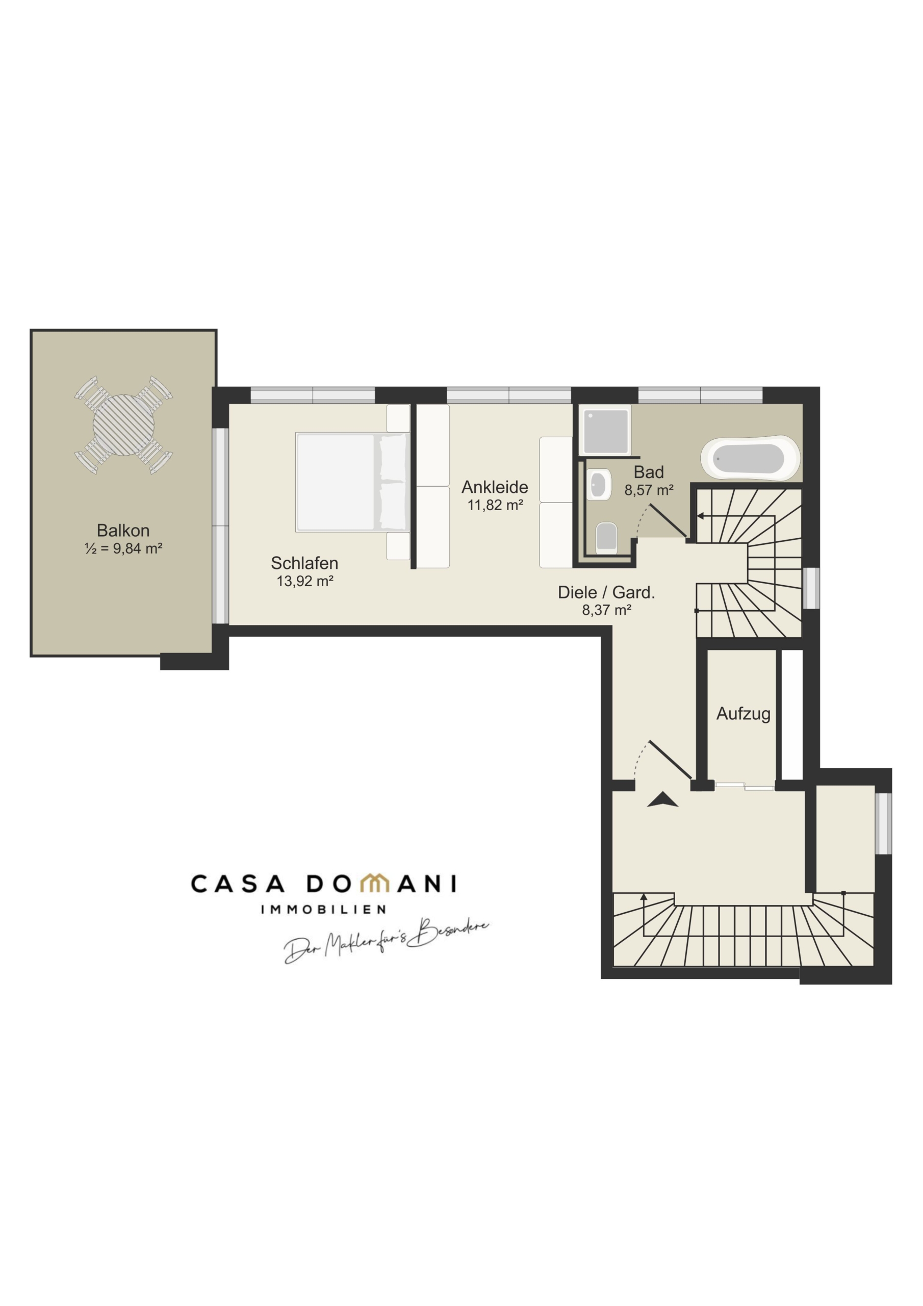 Sie fahren in die Tiefgarage und mit eigenem Aufzug direkt in die Wohnung in den 2 obersten Etagen in dem Neubau.