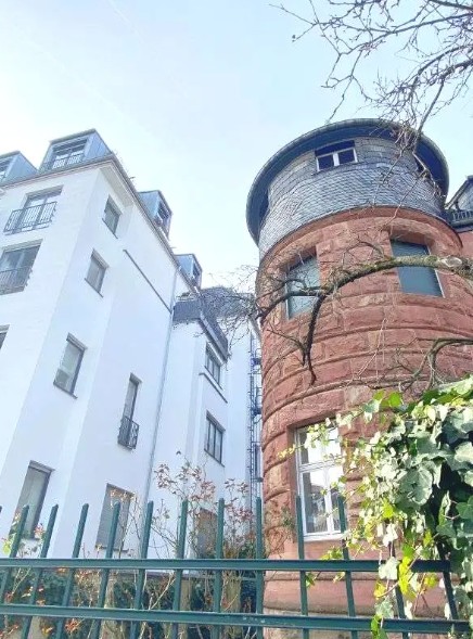 Der moderne Neubau liegt sehr bequem in Fußnähe zum Westend und zur Frankfurter Innenstadt zwischen den alten Villen und grünen Gärten.