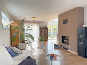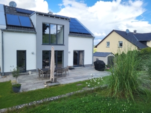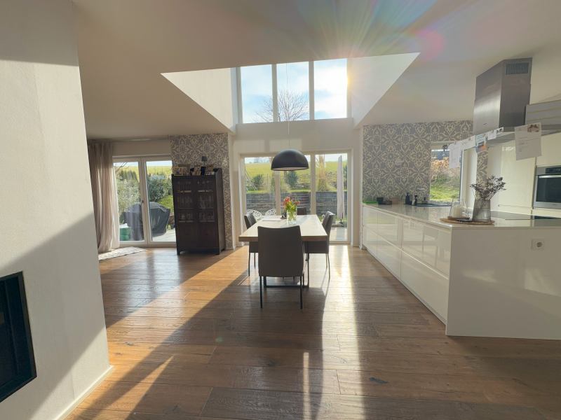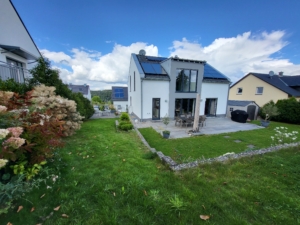Sie erhalten das Haus nun bezugsfertig mit einer hochwertigen Einbauküche, vielen individuellen Einbauten, einem zweiseitigen Kamin und einer Photovoltaik-Anlage auf dem Dach.