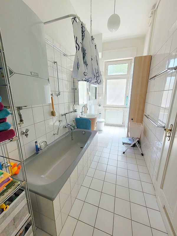 Das Tageslichtbad verfügt über eine Badewanne.