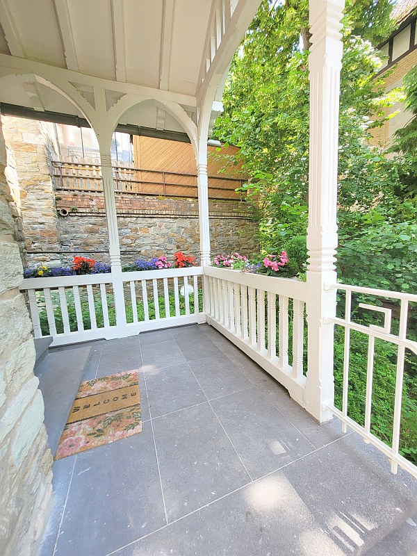 Das Haus liegt auf einer Erhöhung, sodass es von der Straße zum Haus nochmal einige Treppen gibt.