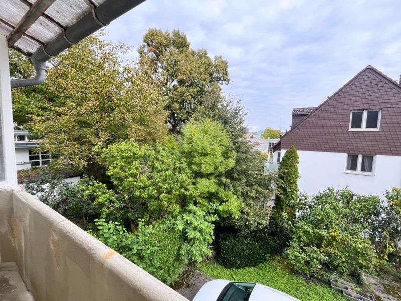 Von der Küche und dem Schlafzimmer aus gelangt man auf den Balkon der aktuell noch renoviert wird und einen angenehmen Blick ins Grüne bietet. Hier lässt sich der Tag bei einem Kaffee oder einem Glas Wein in ruhiger Atmosphäre ausklingen.