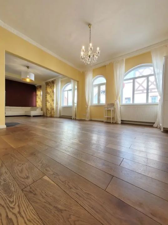Die Hauptebene im Erdgeschoss hat nicht nur einen repräsentativen Salon mit Kronleuchtern, sondern auch einen Anbau im Stil eines Lofts mit Zugang zu einer schönen West-Terrasse und einem ruhigen gepflegten und umzäunten Garten.